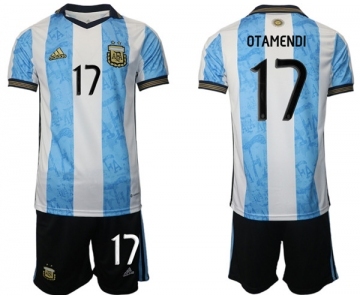 Men's Argentina #17 Otamendi White Blue Home Soccer Jersey Suit