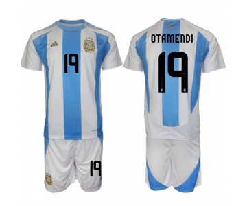 Men's Argentina #19 Nicolás Otamendi White Blue 2024-25 Home Soccer Jersey Suit