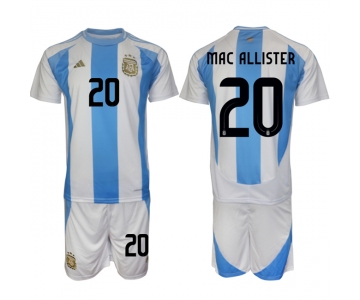 Your Position: Home>Soccer Shirt Kits>National Team Shirt Kit>Argentina>Men's Argentina #20 Alexis Mac Allister White Blue 2024-25 Home Soccer Jersey Suit