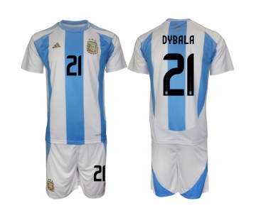 Men's Argentina #21 Dybala White Blue 2024-25 Home Soccer Jersey Suit