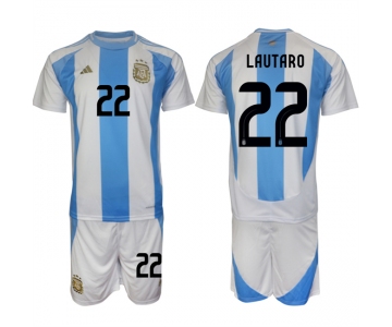 Men's Argentina #22 Lautaro White Blue 2024-25 Home Soccer Jersey Suit
