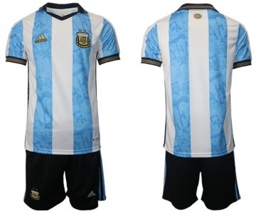 Men's Argentina Blank White Blue Home Soccer Jersey Suit