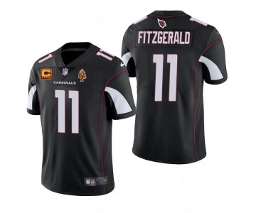 Men's Arizona Cardinals #11 Larry Fitzgerald Black With C Patch & Walter Payton Patch Limited Stitched Jersey