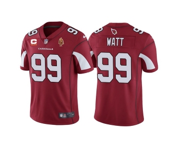 Men's Arizona Cardinals #99 J.J. Watt Red With C Patch & Walter Payton Patch Limited Stitched Jersey
