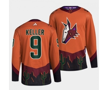 Men's Arizona Coyotes #9 Clayton Keller Orange 2022-23 Reverse Retro Stitched Jersey