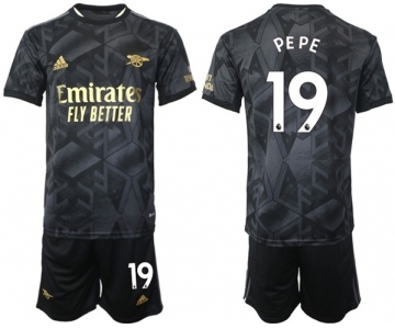 Men's Arsenal F.C #19 Nicolas Pépé 2023 Black Away Soccer Jersey Suit