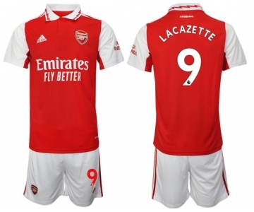 Men's Arsenal F.C #9 Lacazette 2023 Red Home Soccer Jersey Suit