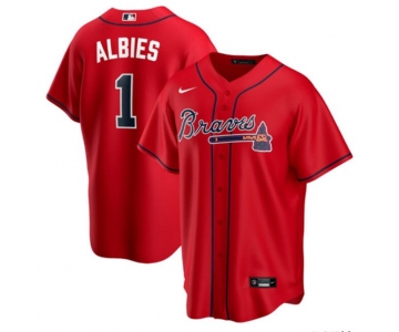 Men's Atlanta Braves #1 Ozzie Albies Red Cool Base Stitched Jersey