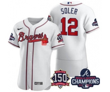 Men's Atlanta Braves #12 Jorge Soler 2021 White World Series Champions With 150th Anniversary Flex Base Stitched Jersey