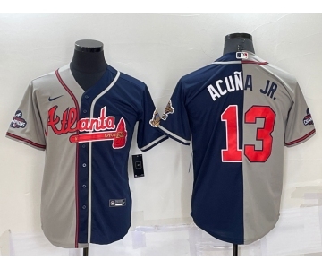 Men's Atlanta Braves #13 Ronald Acuna Jr Grey Navy Blue Two Tone Stitched Nike Jersey