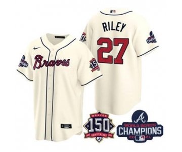 Men's Atlanta Braves #27 Austin Riley 2021 Cream World Series Champions With 150th Anniversary Patch Cool Base Stitched Jersey