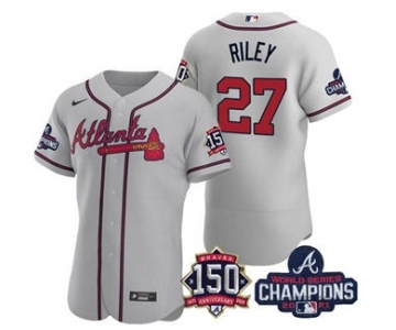 Men's Atlanta Braves #27 Austin Riley 2021 Gray World Series Champions With 150th Anniversary Flex Base Stitched Jersey