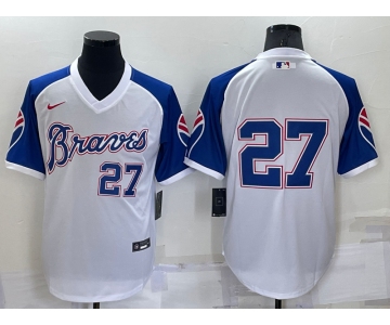 Your Position: Home>NIKE MLB Jerseys>Atlanta Braves >Men>Men's Atlanta Braves #27 Austin Riley White Stitched MLB Throwback Nike Jersey