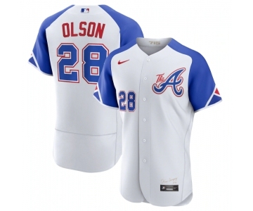 Men's Atlanta Braves #28 Matt Olson White 2023 City Connect Flex Base Stitched Jersey