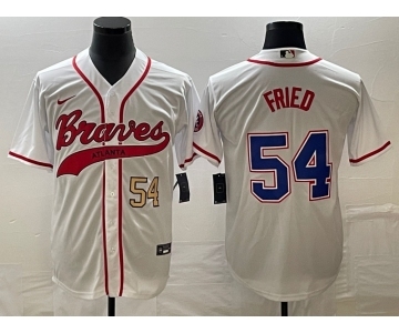 Men's Atlanta Braves #54 Max Fried Number White Cool Base With Patch Stitched Baseball Jersey