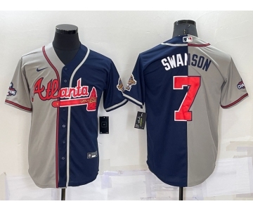 Men's Atlanta Braves #7 Dansby Swanson Grey Navy Blue Two Tone Stitched Nike Jersey