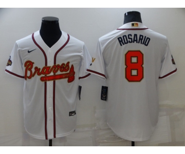 Men's Atlanta Braves #8 Eddie Rosario 2022 White Gold World Series Champions Program Cool Base Stitched Baseball Jersey