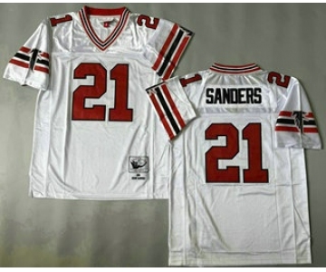Men's Atlanta Falcons #21 Deion Sanders White Throwback Stitched Football Jersey