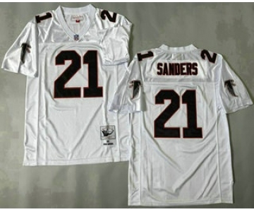 Men's Atlanta Falcons #21 Deion Sanders White Throwback Stitched Football Jersey