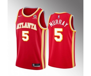 Men's Atlanta Hawks #5 Dejounte Murray Red Stitched Jersey