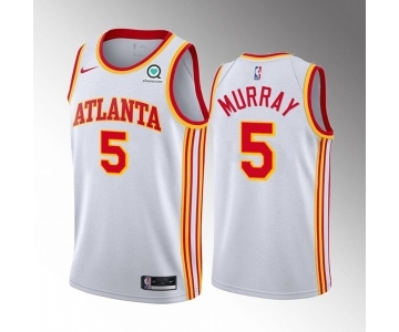 Men's Atlanta Hawks #5 Dejounte Murray White Stitched Jersey