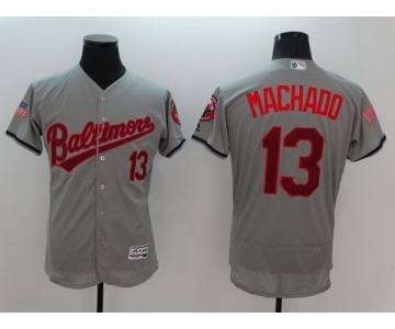 Men's Baltimore Orioles #13 Hanley Ramirez Majestic Gray Fashion Stars & Stripes Flex Base Player Jersey