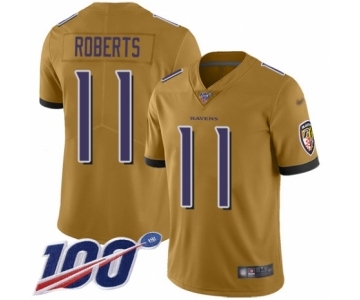 Men's Baltimore Ravens #11 Seth Roberts Limited Gold Inverted Legend 100th Season Football Jersey