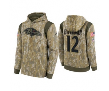 Men's Baltimore Ravens #12 Rashod Bateman Camo 2021 Salute To Service Therma Performance Pullover Football Hoodie