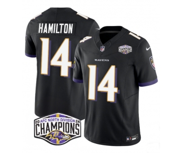 Men's Baltimore Ravens #14 Kyle Hamilton Black F.U.S.E 2024 AFC North Division Champions Vapor Limited Football Jersey