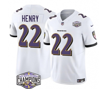 Men's Baltimore Ravens #22 Derrick Henry White F.U.S.E 2024 AFC North Division Champions Vapor Limited Football Jersey