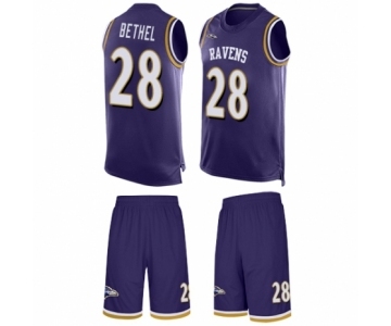 Men's Baltimore Ravens #28 Justin Bethel Limited Purple Tank Top Suit Football Jersey