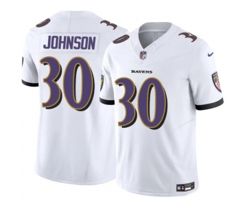 Men's Baltimore Ravens #30 D'Ernest Johnson White 2025 F.U.S.E. Vapor Limited Football Jersey