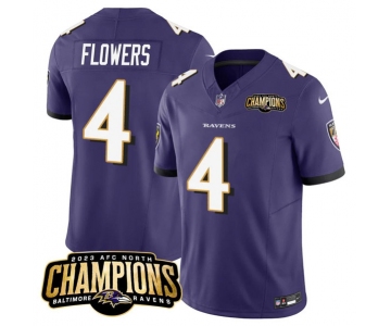 Men's Baltimore Ravens #4 Zay Flowers Purple 2023 F.U.S.E. AFC North Champions Vapor Limited Football Stitched Jersey
