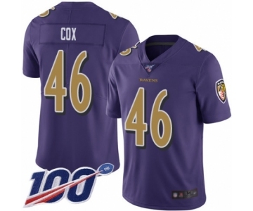 Men's Baltimore Ravens #46 Morgan Cox Limited Purple Rush Vapor Untouchable 100th Season Football Jersey