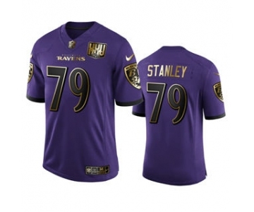 Men's Baltimore Ravens #79 Ronnie Stanley Purple Team 25th Season Golden Limited Football Jersey