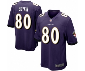 Your Position: Home>NIKE NFL Jerseys>Nike Baltimore Ravens>game jersey>Men's Baltimore Ravens #80 Miles Boykin Game Purple Team Color Football Jersey