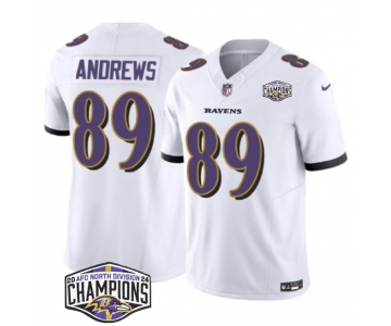 Men's Baltimore Ravens #89 Mark Andrews White F.U.S.E 2024 AFC North Division Champions Vapor Limited Football Jersey