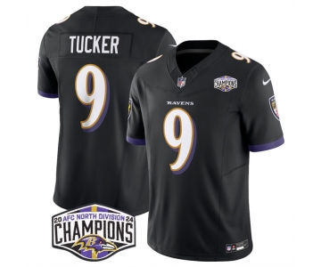 Men's Baltimore Ravens #9 Justin Tucker Black F.U.S.E 2024 AFC North Division Champions Vapor Limited Football Jersey