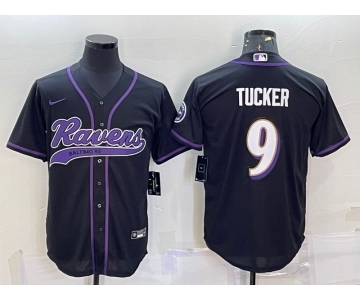 Men's Baltimore Ravens #9 Justin Tucker Black With Patch Cool Base Stitched Baseball Jersey