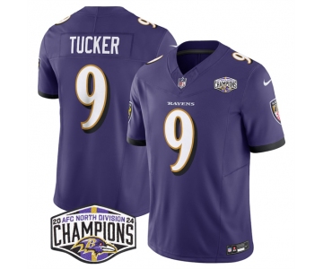 Men's Baltimore Ravens #9 Justin Tucker Purple F.U.S.E 2024 AFC North Division Champions Vapor Limited Football Jersey