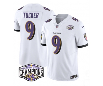 Men's Baltimore Ravens #9 Justin Tucker White F.U.S.E 2024 AFC North Division Champions Vapor Limited Football Jersey