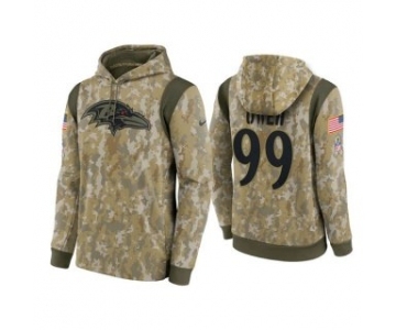 Men's Baltimore Ravens #99 Jayson Oweh Camo 2021 Salute To Service Therma Performance Pullover Hoodie