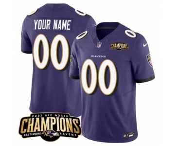 Men's Baltimore Ravens Active Player Custom Purple 2023 F.U.S.E. AFC North Champions Vapor Limited Football Stitched Jersey