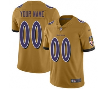 Men's Baltimore Ravens Customized Gold Stitched Football Limited Inverted Legend Jersey