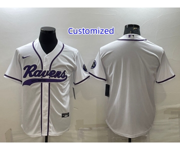 Men's Baltimore Ravens Customized White With Patch Cool Base Stitched Baseball Jersey