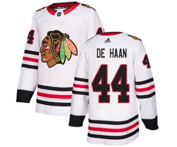 Men's Blackhawks #44 Calvin De Haan White Road Authentic Stitched Hockey Jersey