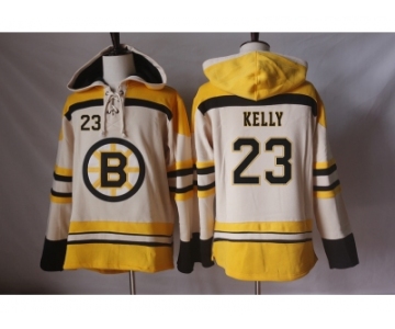 Men's Boston Bruins #23 Chris Kelly Cream Sawyer Hooded Sweatshirt Stitched NHL Jersey