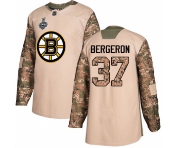 Men's Boston Bruins #37 Patrice Bergeron Authentic Camo Veterans Day Practice 2019 Stanley Cup Final Bound Hockey Jersey