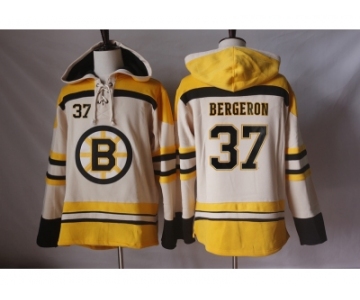 Men's Boston Bruins #37 Patrice Bergeron Cream Sawyer Hooded Sweatshirt Stitched NHL Jersey