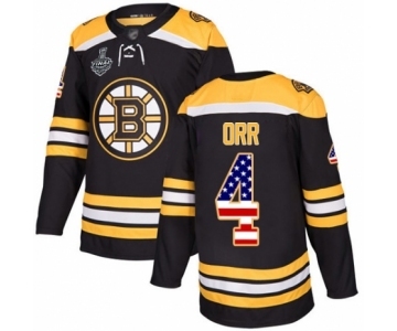 Men's Boston Bruins #4 Bobby Orr Authentic Black USA Flag Fashion 2019 Stanley Cup Final Bound Hockey Jersey